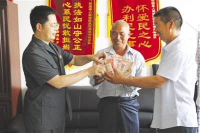 本报讯(记者 李思阳 通讯员 王新兵 焦典范)6月18日一大早,还没到上班时间,农民杜某、杨某就已经等候在社旗县人民法院法官宋兴林的办公室门口。他们是代表83家农户来送感谢信的。“谢谢宋法官,帮俺们讨回了拖欠4年的卖粮款。”一见到宋兴林,杜某、杨某连声致谢。