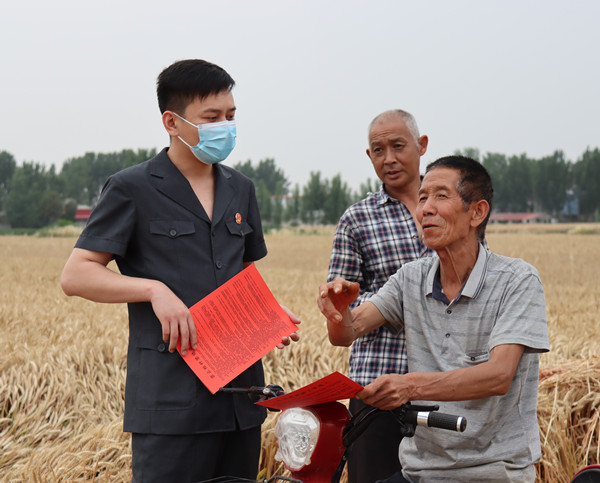 清风送爽,麦田飘香。5月31日,在世界环境日来临之际,社旗县人民法院组织干警深入田间地头,就“三夏”期间的安全生产、环境保护开展普法宣传,切实用法治的力量保护碧水蓝天,共建绿色家园。