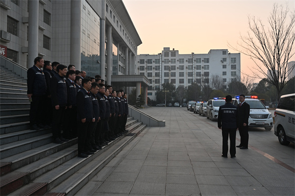 清晨,寒风凛冽。社旗县法院审判楼前,42名执行干警整装待发。“出发!”随着党组副书记、副院长张贺一声令下,警灯划破黎明,各行动小组按照既定预案,奔赴各个执行现场。