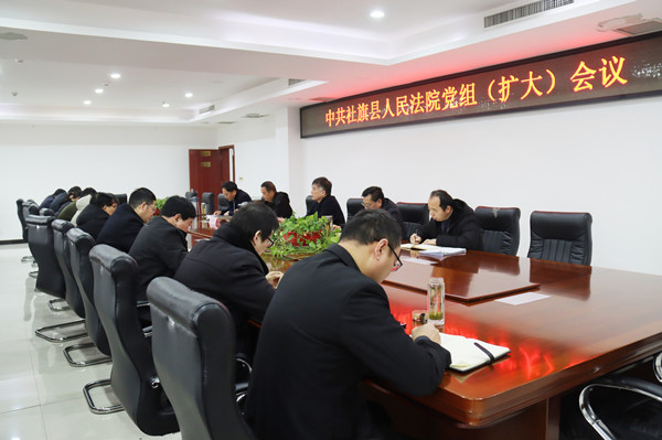 3月6日,社旗县人民法院召开党组(扩大)会议,深入学习贯彻习近平总书记关于树立和践行正确政绩观学习教育的重要讲话和重要指示精神,传达学习上级部署要求,部署启动学习教育工作。院领导班子成员、各部门负责人以及各党支部书记参加会议。