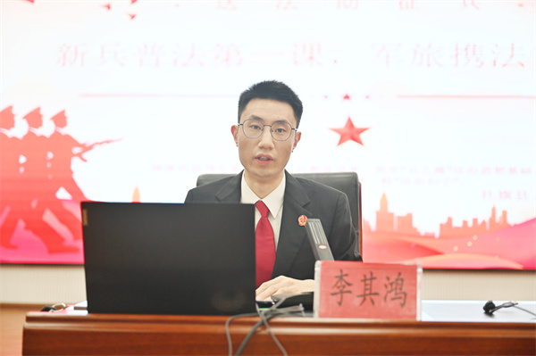 活动中,针对预定新兵思想活跃、身份即将转换的关键节点,法官助理李其鸿以《新兵普法第一课 军旅携法每一步》为题,为预定新兵带来了一场生动而深刻的法治讲座。他摒弃照本宣科的法条灌输,从军队法治建设的重要意义切入,结合《中华人民共和国兵役法》,深入剖析拒服兵役的法律后果,引导预定新兵增强法治观念,做到令行禁止、依法服役。讲座中,李其鸿通过剖析侵害英烈名誉、破坏军婚以及退役军人维权等典型案例,系统梳理了军人军属在婚姻家庭、劳动就业、人身财产等方面的合法权益,帮助预定新兵更加清晰地认识到法律既是保护自身权益的有力武器,也是规范行为、履行职责的基本遵循。整场讲座内容翔实、案例鲜活,既增强了预定新兵的法治意识,也激励他们在即将开启的军旅生涯中尊法、学法、守法、用法,走好军旅生涯每一步。