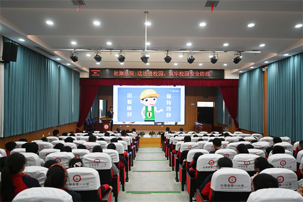 三月的校园,春意正浓。3月24日,社旗县人民法院再次出发,将一份“量身定制”的法治礼物送进社旗县第一小学。学校报告厅内座无虚席,100余名学生代表现场聆听,全校其余3500余名师生在教室内通过视频直播同 步听讲——一场别开生面的普法宣讲活动正在进行。