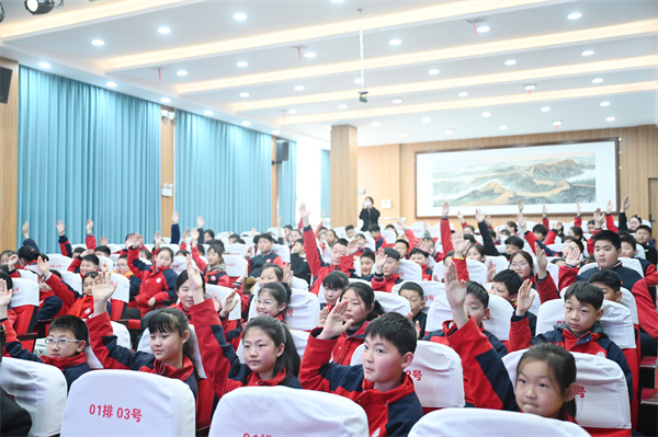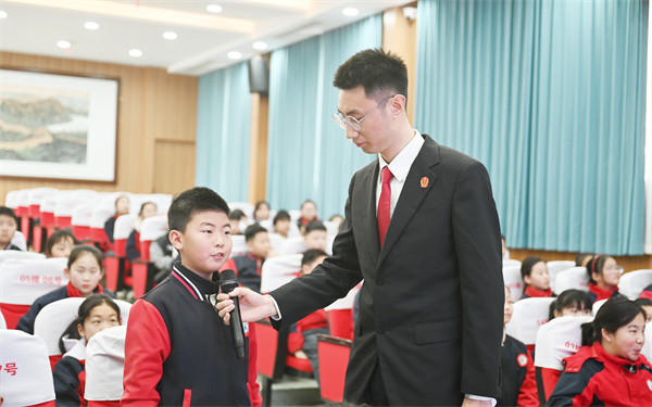 互动环节中,同学们争相提问,从“如何应对同学挑衅”到“看到有人被欺负该怎么办”,李其鸿一一耐心解答,在问答之间将法治的边界与自护的方法清晰呈现。“法治教育不是冷冰冰地说教,而是要在孩子心中种下敬畏与自护的种子。”正如他所说,这粒种子,此刻正在三千多个心田里悄然萌芽。