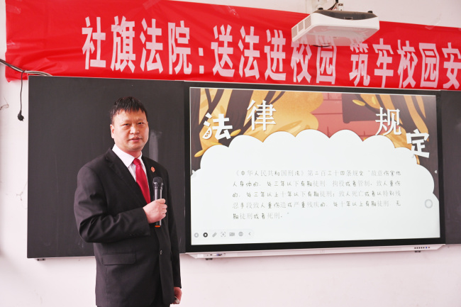 为深入贯彻落实总体国家安全观,进一步提升青少年国家安全意识和法治素养,4月15日,在第十一个全民国家安全教育日,社旗县人民法院赊店法庭负责人吴志浩一行走进社旗县第四初级中学开展“送法进校园”活动,以司法力量守护校园安全,为青少年健康成长保驾护航。