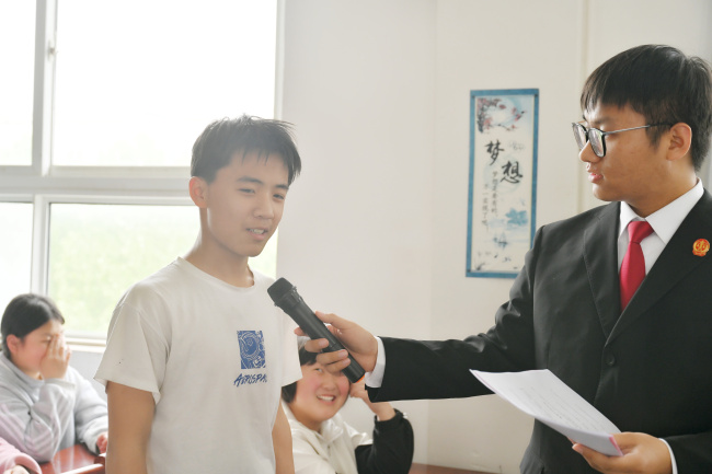 在互动问答环节,法官助理王一帆围绕国家安全的定义、全民国家安全教育日设立的背景、危害国家安全常见的行为等内容与同学们互动交流,进一步加深了同学们对国家安全知识的理解与掌握。