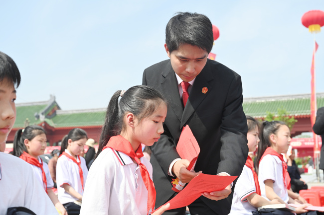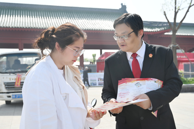 4月17日,在第26个世界知识产权日来临之际,社旗县人民法院组织干警走进社旗县古镇市民广场,开展知识产权普法宣传活动,将法律知识送到群众身边,让知识产权保护理念融入古镇烟火、深入人心。