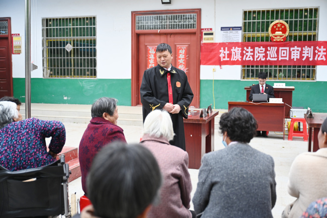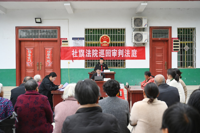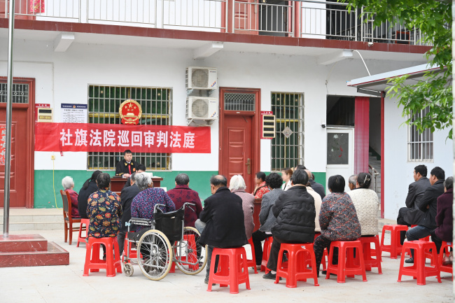 4月22日下午,社旗县人民法院赊店法庭将庭审现场“搬”进社旗县下洼镇周庄村,公开开庭审理一起赡养纠纷案件,以“巡回审判+现场普法”的形式,把司法服务送到群众“家门口”,以司法裁判彰显法律权威,以普法宣讲弘扬孝老美德,实现“审理一案、教育一片”的良好效果。